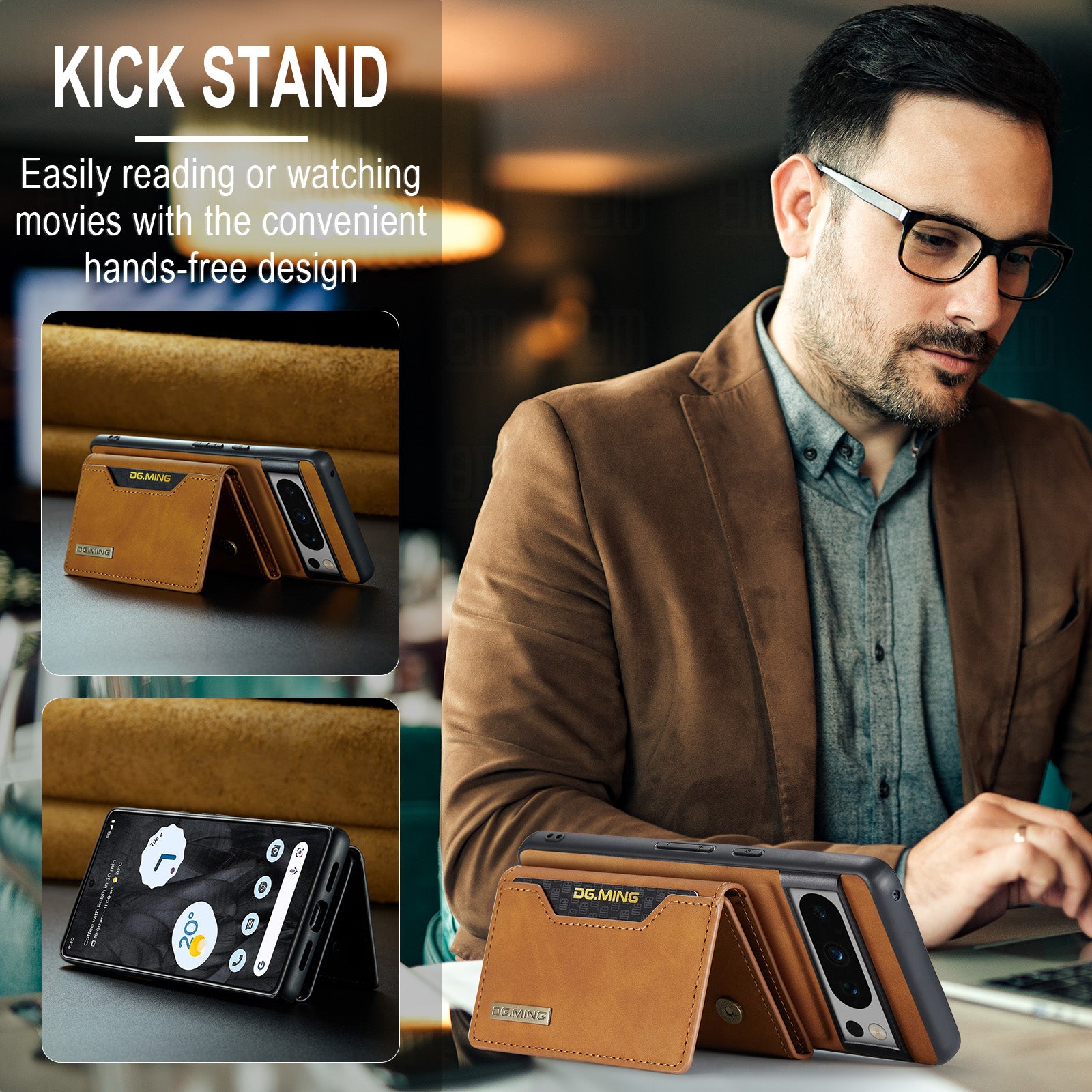 - 8 convenient card slots for credit cards, IDs, business cards, cash, and bills