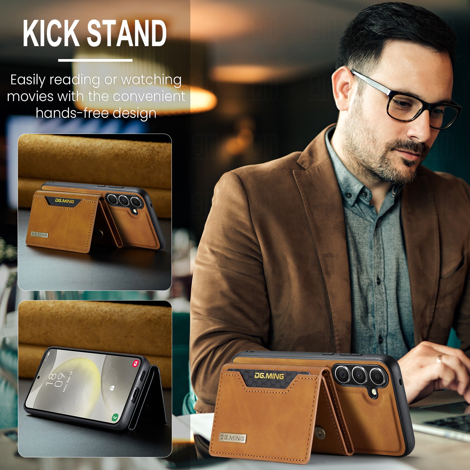 - 8 convenient card slots for credit cards, IDs, business cards, cash, and bills